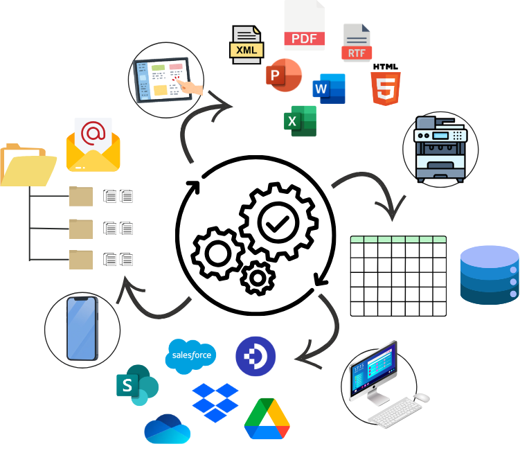 抽出された情報はすべて、ドキュメントの名前変更、新しいディレクトリの作成、ターゲット電子メールの定義、データベースを更新するための値など、 さまざまな用途に使用できます。